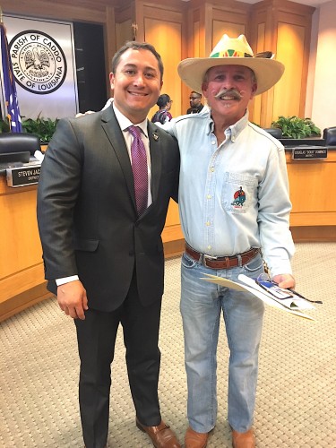 Pictured is Chris with Caddo Commissioner Mario Chavez.