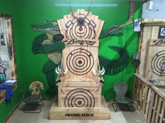 The latest trend for businesses is creating interactive experiences for customers. Businesses are looking for ways to grow their social media and what better way than a selfie area that promotes your business and is fun for your customers. Chris built a 10 foot cutout alligator, just perfect for a memorable selfie at Bayou Axe in Bossier’s East Bank District.