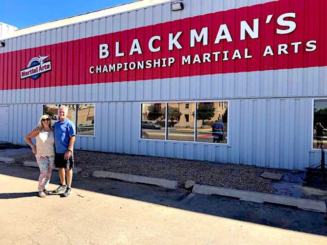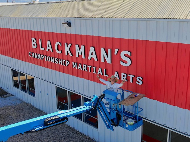 Blackman’s Championship Martial Arts building in Albuquerque, New Mexico was a labor love in working with dear friends on branding their building during the Summer of 2018. Chris has worked on many projects in Albuquerque and expects that there will be more before this artist hangs up his brush.