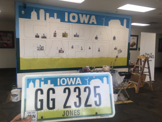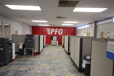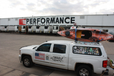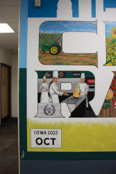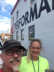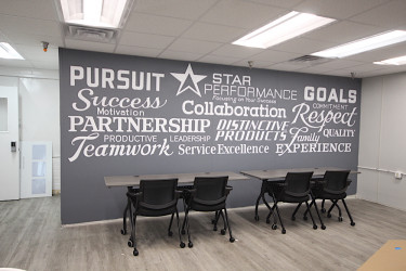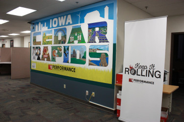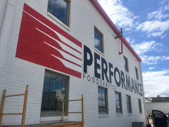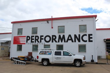He will travel around the country branding a business. For Performance Foods, he began in Shreveport with a 6′ x 50′ mural of the company logo, then headed to Cedar Rapids, Iowa to add a mural to their lobby entrance and then a 12′ x 150′ exterior wall mural of the company logo.