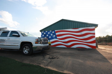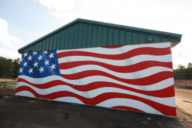 Piney Park in Marshall, Texas offers families a multitude of events and attractions throughout the year including a holiday trail of lights, fall pumpkin patch and more on 30 acres. Chris was called in to paint an American Flag on their central building.