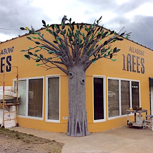 ALL ABOUT TREES is located along Highway 80 in Waskom, Texas. This project definitely made their building stand out from a distance down the highway as you approach the building. You can’t miss this massive tree, the height of the building. Read more about Chris’s work along Highway 80 at “Transforming A Community.”