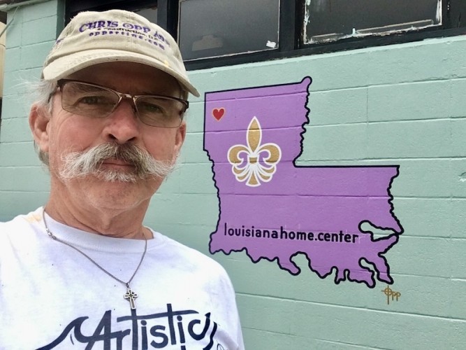 Louisiana Home Center is part of the 25 Projects completed by Chris Opp in the East Bank District of Bossier City, LA. This project included the design of a new logo for the business, custom finished front doors with crackle gold appearance, signage, designed and painted building creating a unique color palette to make the business stand out. The project was completed the summer of 2019. Learn more about the other East Bank District projects that Chris has completed – click here.