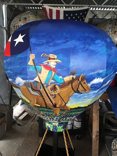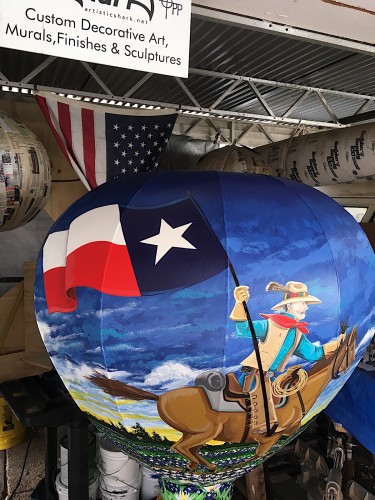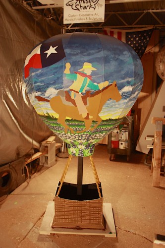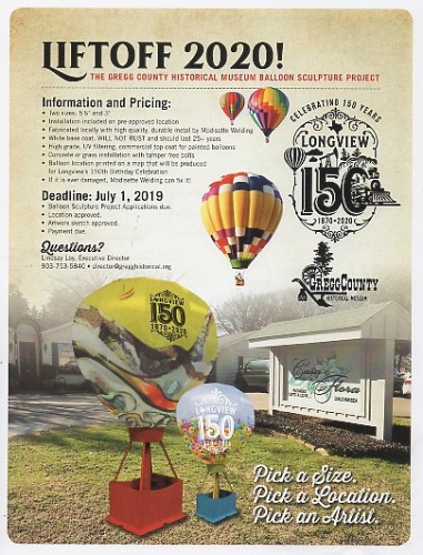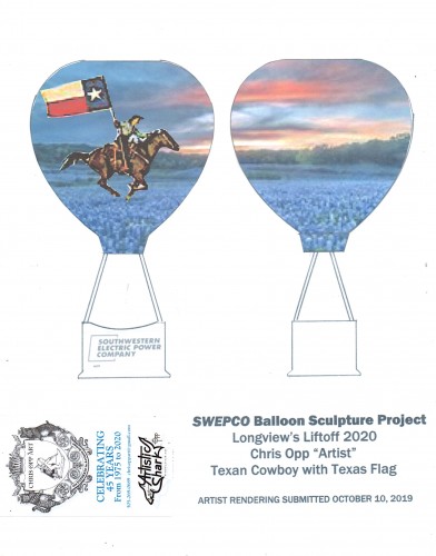 Longview, Texas has long been the host of a large hot air balloon festival each year. The Gregg County Historical Museum’s Balloon Sculpture Project is a celebration of Longview’s history and heritage through custom made metal Hot Air Balloons that will be strategically placed around town to celebrate Longview’s Sesquicentennial. SWEPCO purchased a 5’ 6” metal, rust proof, high quality, white balloon sculpture customized by Chris Opp with art. Each Balloon Sculpture will be a wonderful tribute to what makes Longview great and each have a 25 year outdoor life.