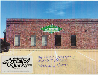 Jackson Construction in Shreveport, Louisiana reached out to Chris for some external branding by adding a hand-painted logo with an aged look matching the company’s style and flavor. Chris did not disappoint. Also, just a great group of people to work with!