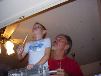 The adventures with Nolan have created sustained memories for Chris. He painted this Chicken Little Mural in Nolan’s room. After Chris left, Nolan asked, “When is Chris coming back? He forgot to paint the eyebrows on the Martians.” Chris came back later and added the eyebrows for Nolan.